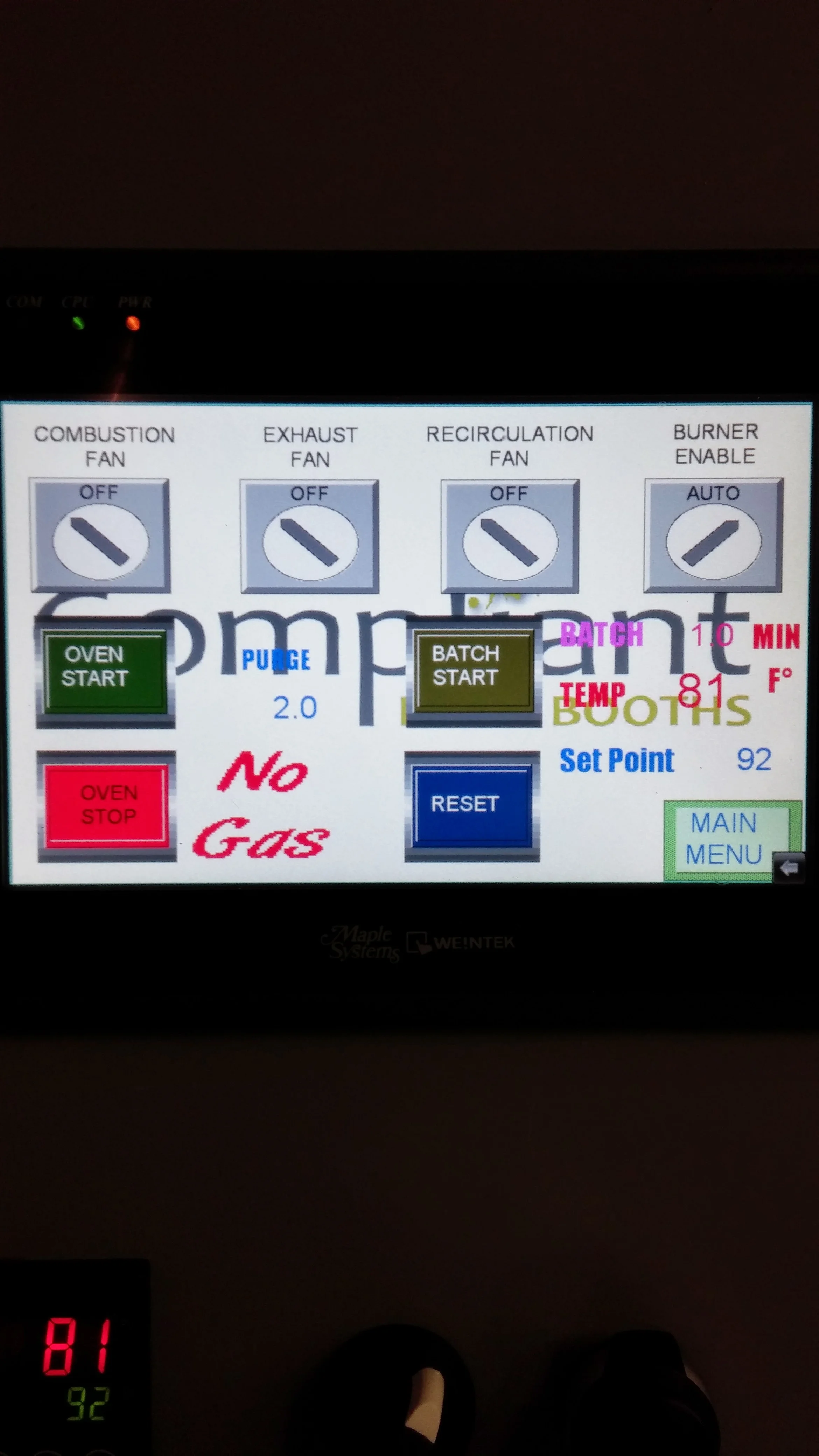 Paint Booth Control panels